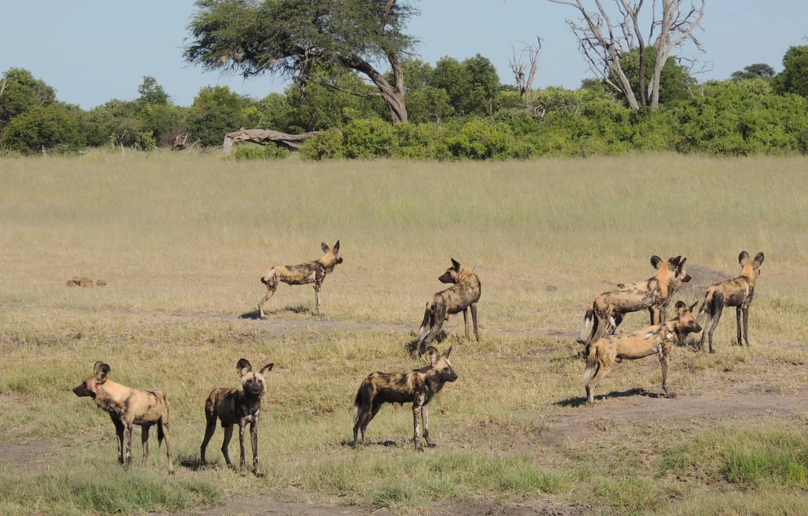 The grass is currently tall in HNP; itβs not easy to see the pups from any angle now. The kudus and impalas are fit as ever in this time of plenty food and water, it only takes good hunters like the rare and unique painted dogs to take one down.