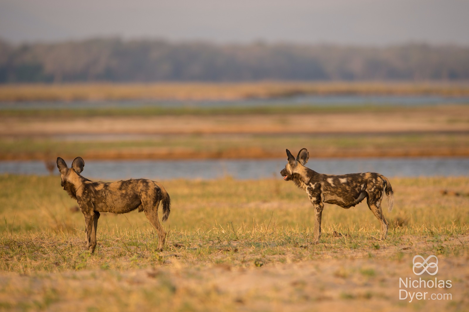 I find Tait and her Vundu Pack on the banks of the Zambezi River in the remote wilderness area of the park. It has been a month since I last saw her and she seems to have aged considerably. She limps painfully, her last two pups are missing and a bulge protrudes from her belly that suggests mastitis.